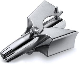 そんな時、会社の帰りに川崎駅ビル(建て替え前の古い駅ビル)の金物店で手動鼻毛カッターを見つけました。当時のモノとは違いますが、下の写真のような構造でした。原理は簡単ですがうまく使えるかどうか不明でしたし、未だ安月給だったこともあって、直ぐには購入しませんでした。何度かお店に通って商品棚を眺めた後に意を決して購入しました。