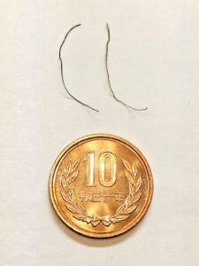 今朝(2025年12月6日)、洗面が終わった後で、鼻孔がムズムズするので「ハハーン」と思いました。案の定、手入れしたばかりなのに長いのが2本鼻孔から顔を覗かせていました。ハサミで切ってそのまま捨てようと思ったのですが暇なので記念に写真を撮っておくことにしました。長いと思ったのですが、一緒に撮った10円硬貨の直径が23.5mm(規格&実測)なので我が鼻毛の長さは3cm弱でした。