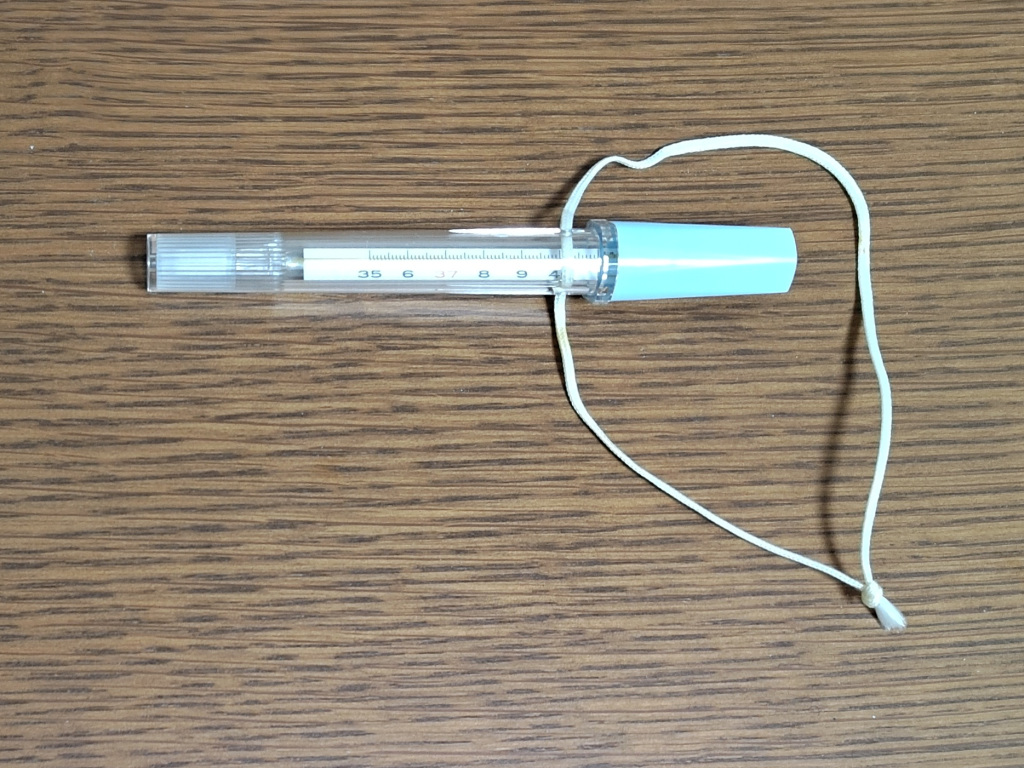 写真の体温計は現役時代に会社の健康保険組合から頂いたモノです。一年間一度も健康保険を使わなかった〈健康優良児〉として支給されたり、組合の何かの記念行事で全組合員に支給されたモノです。職場や家の引出に何本かありました。職場のモノの行方は思い出せませんが、家にあったモノは、上述の政省令の改正に伴う水銀使用製品の回収運動を機に処分しました。全部処分したつもりでしたが、写真の体温計だけが処分漏れして放置されていたのです。